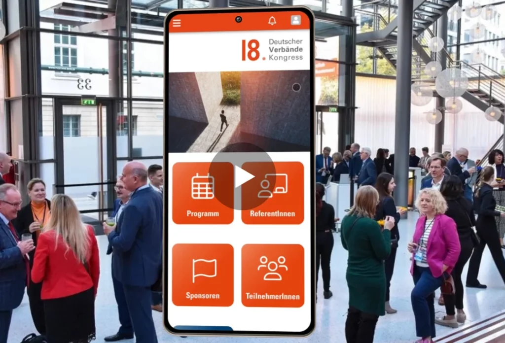 Der Deutsche Verbändekongress bringt alle zwei Jahre Fach- und Führungskräfte von Verbänden in Deutschland zusammen. 2022 fand die Veranstaltung an einem Tag vor Ort statt, wobei Informationen, Sponsoring und mehr über unsere Event-App zugänglich waren. Der zweite Tag wurde als Online-Veranstaltung realisiert, die über die EventMobi-Plattform gestreamt werden konnte.